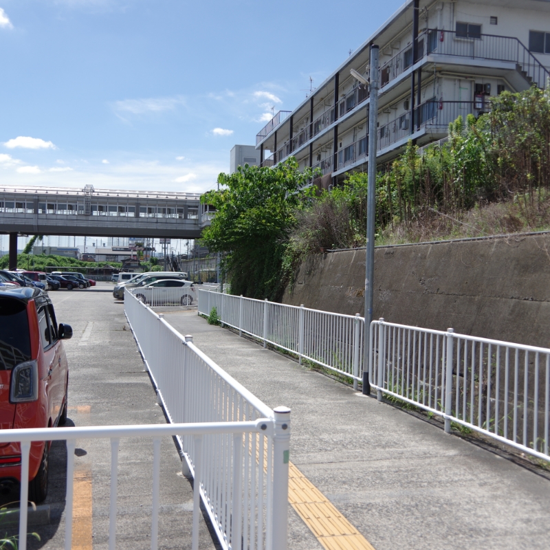 Go down the stairs and to the right, you will see a well-maintained pedestrian street, walk straight and you will find stairs and an elevator.