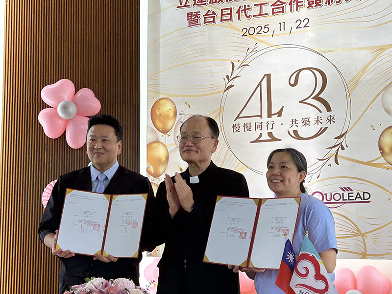 The Ritta Rehabilitation Training Center celebrated its 43rd anniversary on November 22, 2025. To mark this significant milestone, a signing ceremony for a Taiwan-Japan OEM cooperation agreement was held with Shiga Prefecture-based Quoled Co., Ltd. This agreement was conducted as the central program of the 43rd anniversary ceremony.